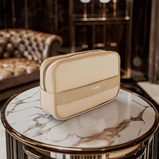 Premium vegan leather cosmetic bag - beige