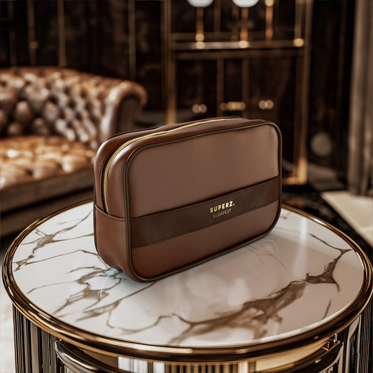 Premium vegan leather cosmetic bag - brown